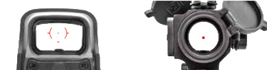 В отличии от круглых корпусов конкурентов, прямоугольная шахта визирования Eotech обладает более широким полем зрения во всех направлениях. Помимо узкого поля, коллиматоры с трубчатым корпусом "радуют" владельца мертвым зонами и тоннельными эффектами.