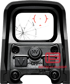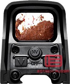 Вставка для работы голографии прозрачна и не закрывает изображение цели. Саму прицельную марку, наблюдает только стрелок и она незаметна со стороны, даже в случае использования ПНВ(прибора ночного видения). Передние линзы с антибликовым покрытием, не демаскируют охотника в солнечную погоду. Голографические прицелы EOTech относятся к открытому типу, прицеливание производится обоими глазами, что является несомненным удобством, делая процесс комфортным и эффективным.